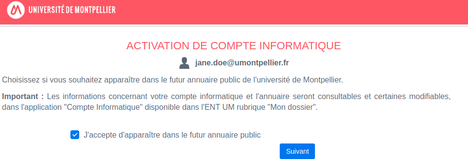 • Choisir d’apparaître ou pas dans le futur annuaire public de l’université de Montpellier,