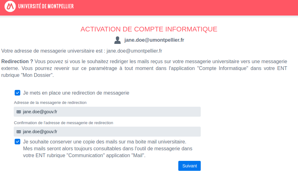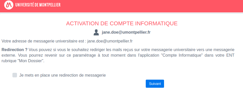 Si vous êtes un personnel de l’université de Montpellier, une boite mail va être créée à la fin de la procédure de validation de compte et sera disponible dans votre ENT.