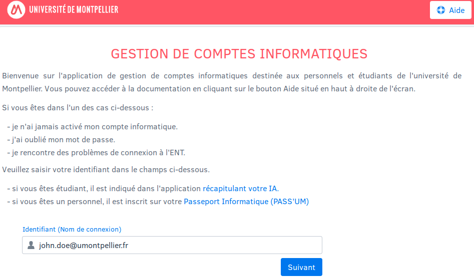 A l’issue de ces étapes votre compte informatique UM sera activé et prêt à être utilisé pour vous connecter à l’ENT, utiliser le mail UM, Moodle ou tout autres services numériques.