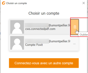 - Si vous aviez un précédent compte chez FOXIT, vous pouvez supprimer l’ancien compte (il ne servira plus) en cliquant sur les trois points devant le nom du compte, puis sur « Oublier »