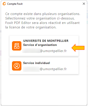- Choisissez « Compte Foxit » et connectez vous avec vos identifiant de l’ENT (de l’Université de Montpellier) :