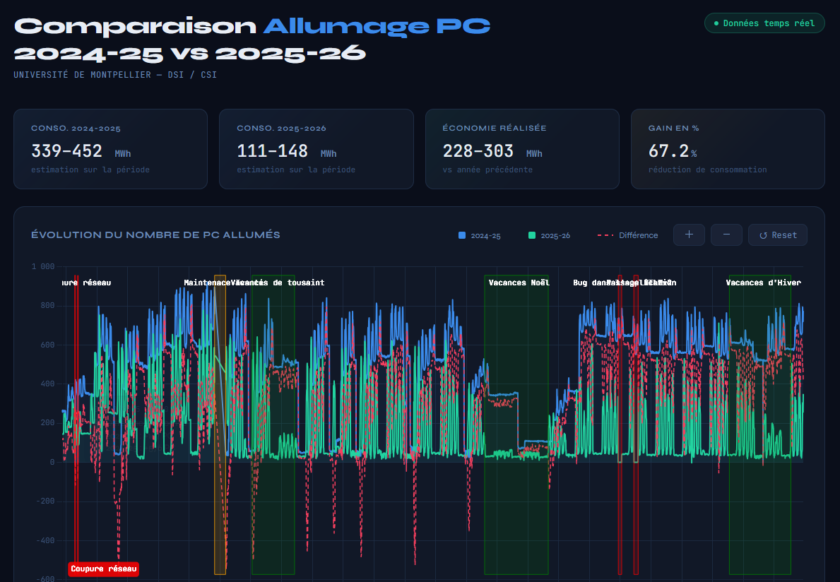 Depuis plusieurs années, les équipes de la DSIN observaient un phénomène récurrent : des ordinateurs restant allumés ou en veille prolongée, y compris lorsque les salles étaient vides, en dehors des créneaux de travaux pratiques ou après fermeture des bâtiments.
