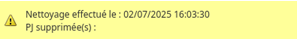 - Un bandeau jaune s’affichera sur les messages dont les pièces jointes ont été supprimées, pour une identification rapide.