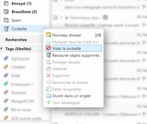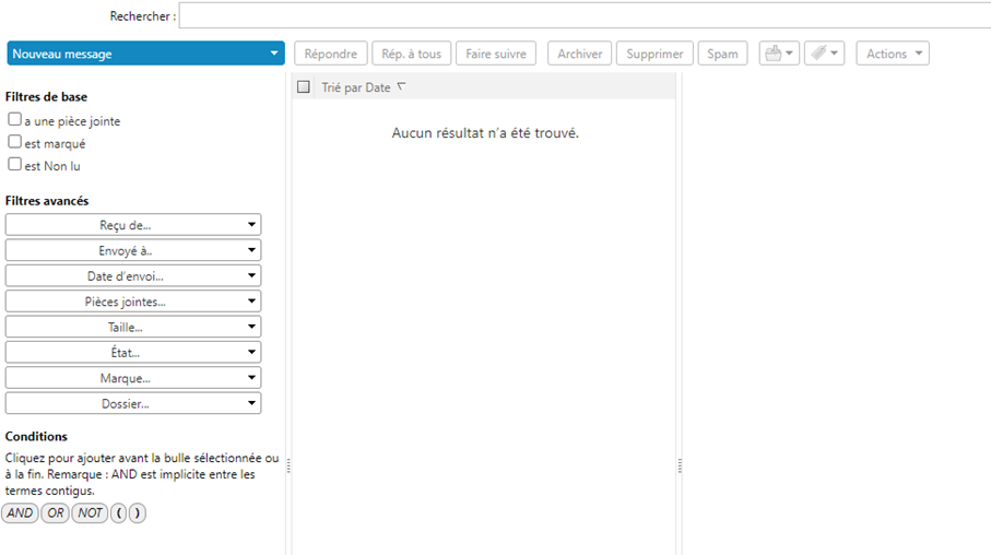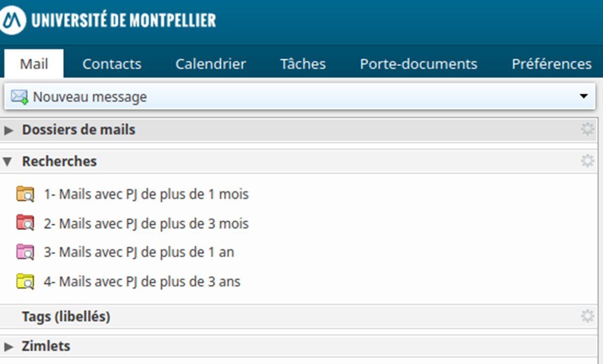 Sélectionnez les courriels en utilisant les requêtes proposées via le menu Recherches.