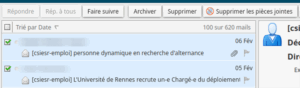 - Vous pouvez supprimer sans crainte les e-mails (et donc les pièces jointes) reçus via une liste de diffusion à laquelle vous êtes abonné. En effet, depuis l’entrée Liste de diffusion de l’ENT, vous avez la possibilité d’accéder directement à tous les mails (et leurs pièces jointes) des listes de diffusion auxquelles vous êtes abonnés.