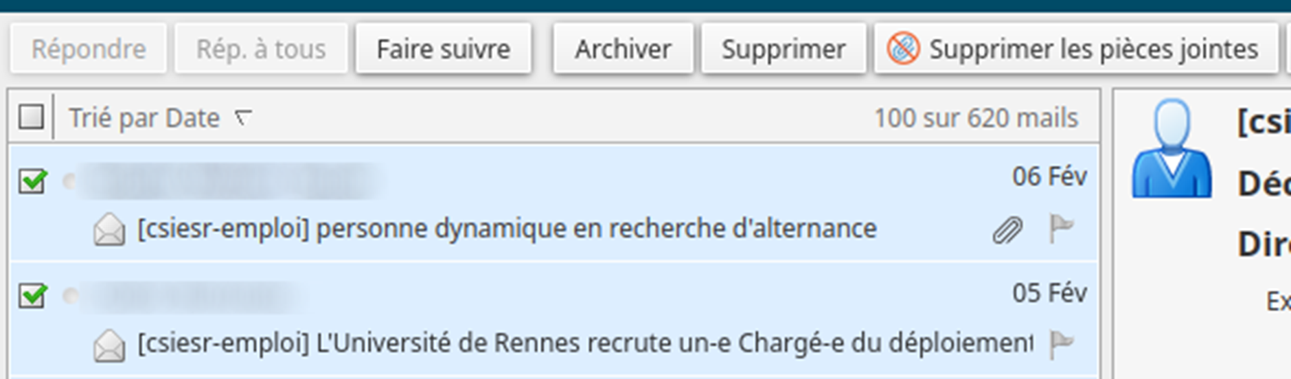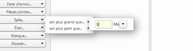 - Taille : pour identifier les e-mails qui occupent le plus de place dans votre boite