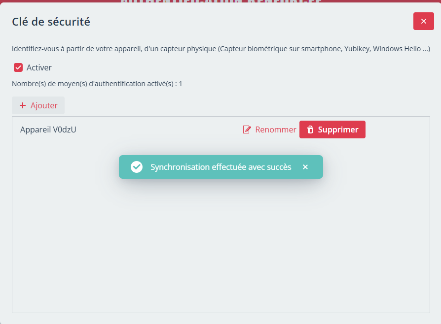 - Une fois la clé ajoutée, vous la trouverez dans la liste des clés de sécurité