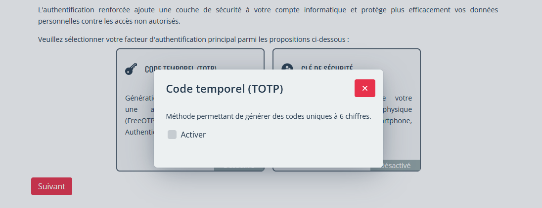 Etape 2.1 : Cliquer sur la case Code Temporel (TOTP)