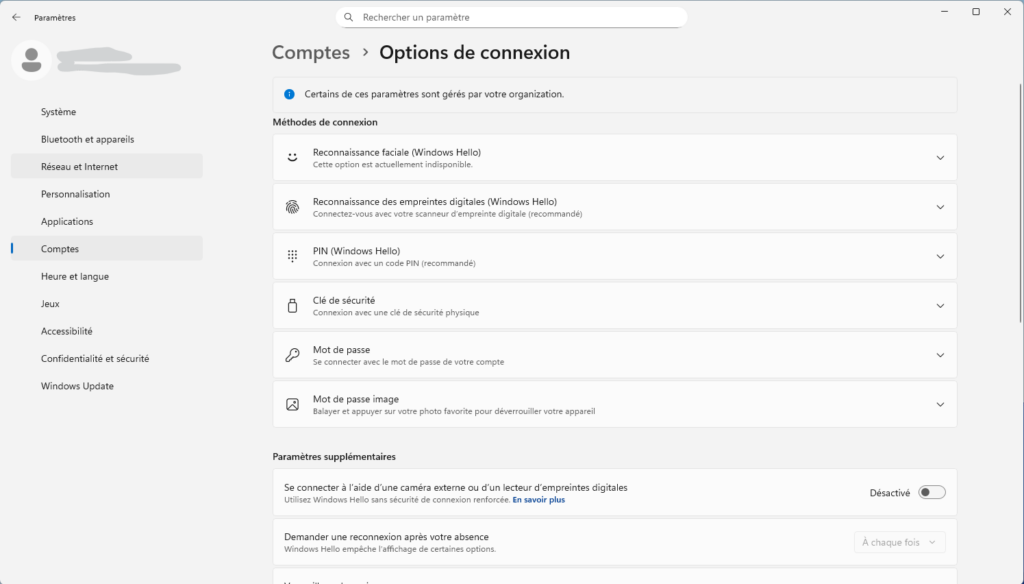Si vous avez un ordinateur non géré par la DSIN et vous voulez créer une clé d’accès sur Windows vous devez avoir activé Windows Hello.