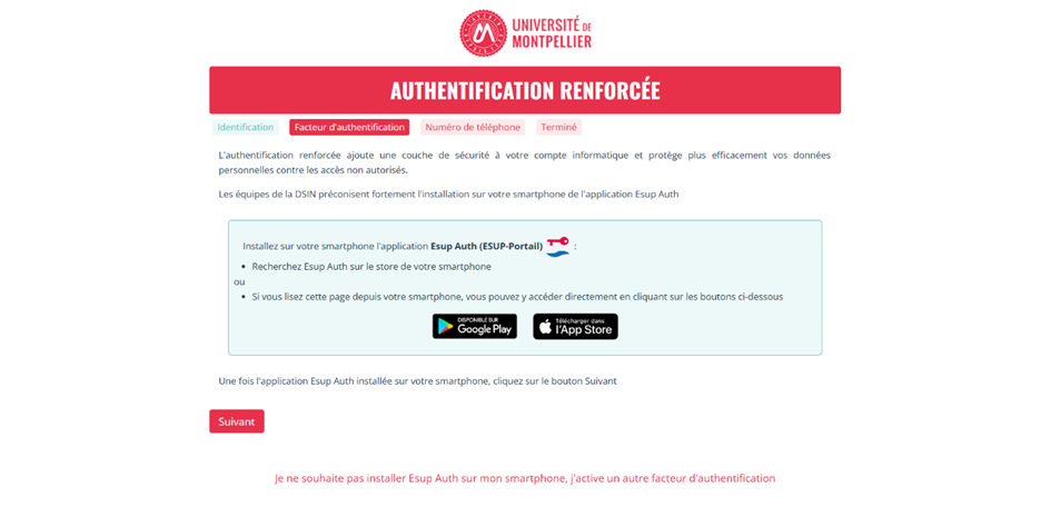 - Téléchargez l’application « Esup Auth » sur le Google Play Store (Android) ou l’App Store (iOS).