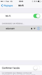 Votre iPad se reconnectera automatiquement à proximité du réseau Eduroam.