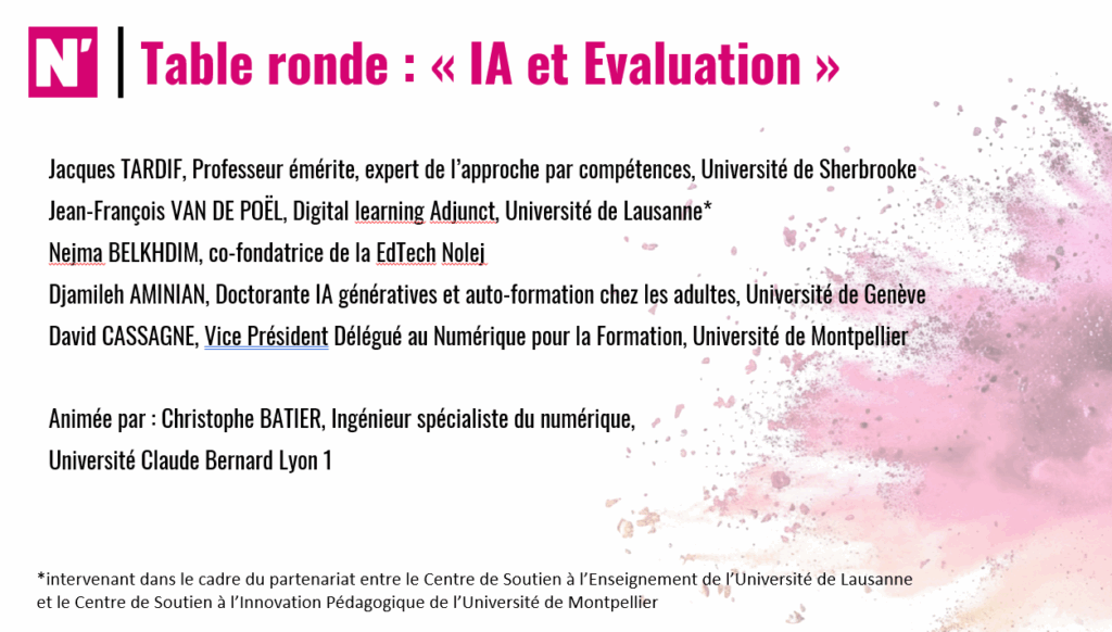 Table ronde interactive : « IA et Evaluation » : échanges entre intervenants et participants de la Journée PédagoN’UM sur les usages pédagogiques de l’IA.