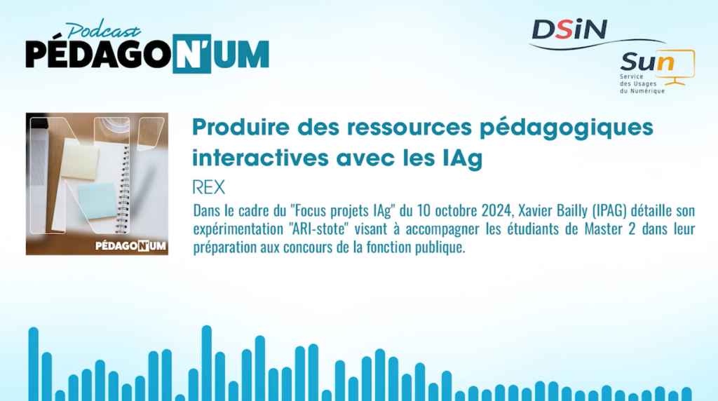 Podcast : Produire des ressources pédagogiques interactives avec les IAg – REX de Xavier Bailly (IPAG)